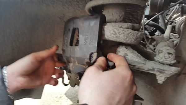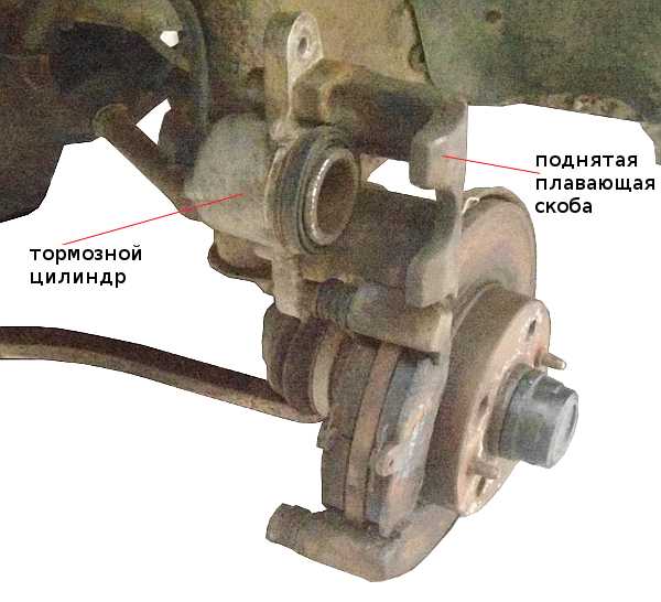 В первом случае необходимо поддомкратить автомобиль, снять колесо, очистить суппорт от грязи снаружи, отсоединить и поднять его плавующую скобу.
