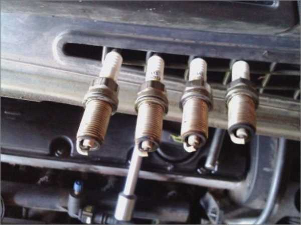Всего их должно быть четыре. Теперь наступает один из наиболее сложных этапов. Воспользовавшись головкой нужного диаметра, выкрутить свечи. Осмотреть их предельно внимательно. Обычно, в таких ситуациях картина далеко не самая лучшая: Кстати, это указывает на то, что лучше ремонт не откладывать в долгий ящик. Подобного результата можно избежать, если делать все сразу.
