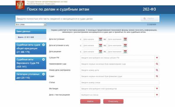 1 вид поиска «по делам и судебным актам» — http://sudrf.ru/index.php?id=300#sp