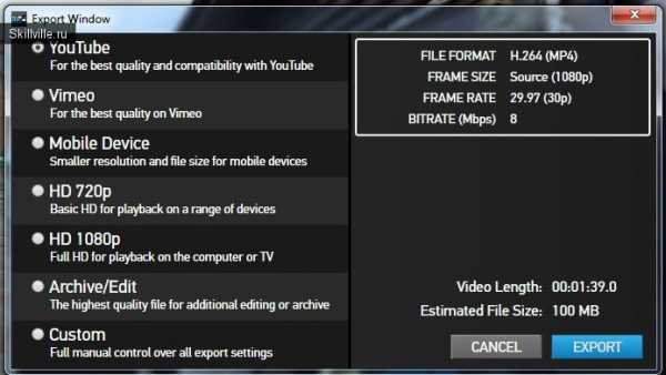 Если не нужны специальные настройки, выбирайте HD 1080.