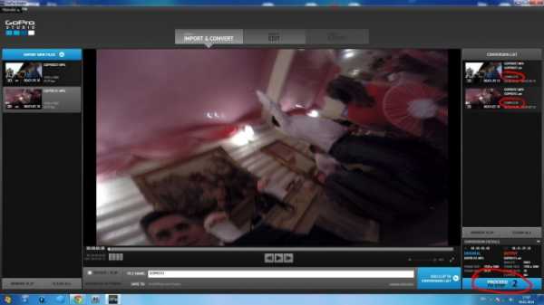 Приложение GoPro Fusion Studio начнет импорт ваших материалов и сгенерирует предварительный просмотр…