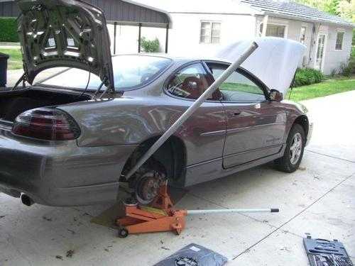 2. Далее, для того чтобы привести подвеску в равновесие, следует подвесить транспортное средство на домкрате или подъемнике хотя бы на одну ось.