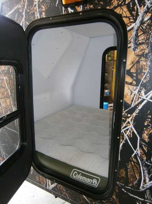 Для того, чтобы обустроить внутрипалаточное пространство, потребуются надувных матрасы и раскладной стол. Этого вполне хватит для рыбаков, которые выехали на рыбалку с ночевкой. В такой палатке спокойно смогут переночевать 2-3 человека. Но зимой будет холодно, поэтому такая прицеп-дача подходит только для теплой поры года.