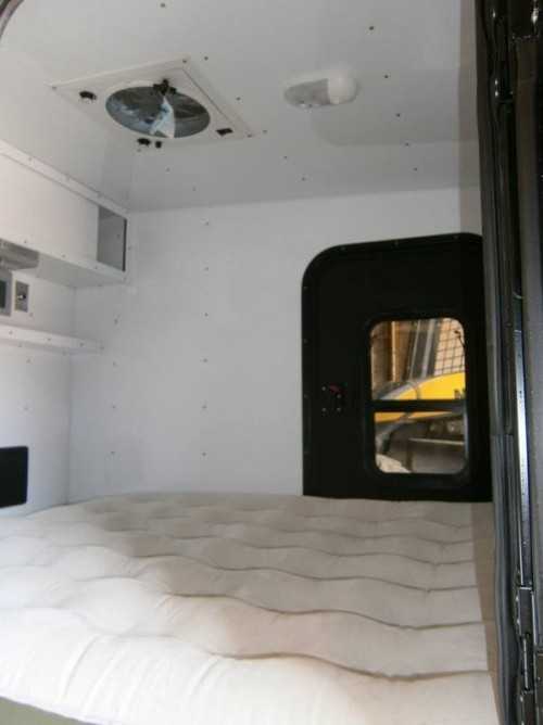 Этот кемпер предназначен для экстремальных погодных условий и так хорошо утеплен, что его можно нагревать только теплом тела или небольшим обогревателем, предназначенным для использования в помещении. С белой крышей и форточками он будет оставаться прохладным летом, когда припаркован под деревьями.