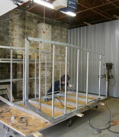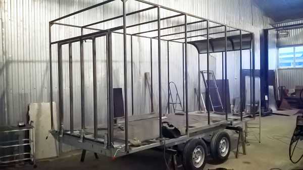 Строительство автодачи происходит двумя способами — на самом прицепе, для этого его борта должны быть демонтированы, или на специальном стенде, с последующей установкой на прицеп.