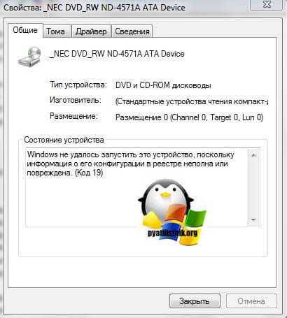 Добрый день! Уважаемые читатели и гости IT блога Pyatilistnik.org. В данной статье, я в очередной раз, хочу воспеть оду компании Microsoft, так как она не оставляет меня без решения, каких-либо проблем, связанных с ее продуктами. В прошлый раз, я вам подробно рассказал, как решается ошибка «Запуск этого устройства невозможен (код 10)», там у нас не работали разные устройства. Сегодня пришло время поговорить, об ошибке «Windows не удалось запустить это устройство (код 19)«, при котором все те же устройства, по типу CD-ROM, клавиатура, звуковая карта или USB токены, системой видятся, но с ошибкой, которая не позволяет ему работать. Сегодня мы ее победим и научимся устранять, этот код 19.