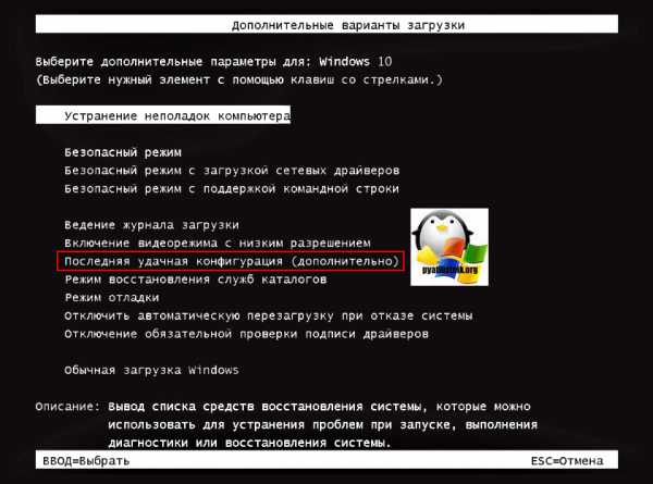 Этот параметр загрузки относится к оборудованию. При выборе этого пункта происходит «откат» конфигурации устройств на один шаг назад.