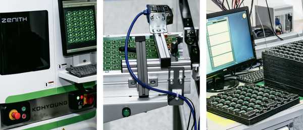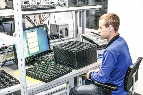 Далее блоки собранных схем разрезаются на отдельные платы, которые монтируются в корпуса, и на них устанавливается ПО. После чего — снова проверка специальным электронным тестером. Причем проверяются не выборочные экземпляры из партии, а каждое изделие!