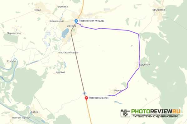Судя по данным маршрута, водителям необходимо на 629-м километре трассы М-4 «Дон» повернуть на хутор Максимово. После этого следует проехать через Березово, Пески и добраться до Лосево. Там по улицам Нижняя Луговая, Базарная, Почтовая и Кузнечная можно выехать снова на трассу М-4 и продолжить свой путь.
