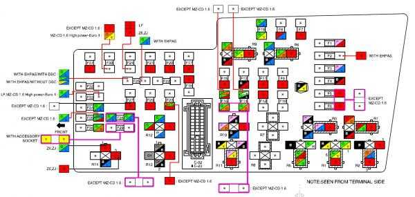 Блок реле под капотом (Для моделей с двигателем Z6)