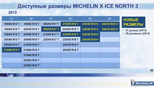 Раз уж я заговорил про большую размерность колеса, на которое можно установить X-Ice North 3, то максимальный диаметр шины достигает 20 дюймов, а минимальный – 14 Покрышки размерностью до 16 дюймов включительно производятся в нашей стране, а все что больше – импортируется к нам из Европы.