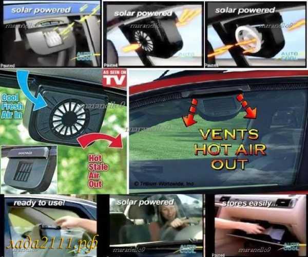 2. Вентилятор, который работает от солнечных батарей, выгоняющий горячий воздух из припаркованной машины.