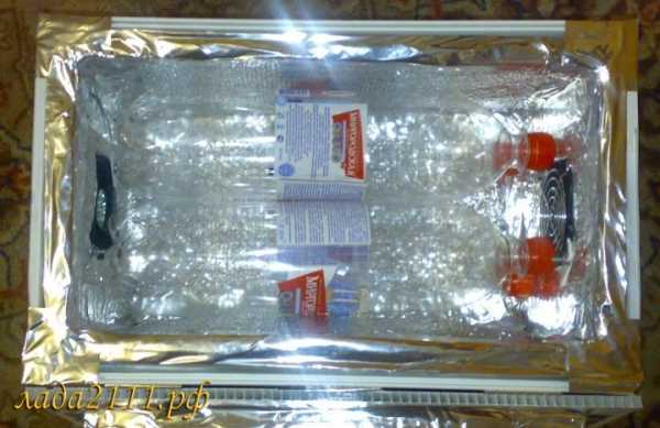 4) Устанавливаем радиатор, с которым необходимо очень осторожно обращаться, поскольку некоторые его детали можно легко повредить. Зачастую его устанавливают перед штатным радиатором автомобильного двигателя.