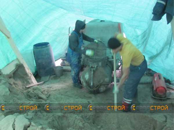 На объектах, площадь которых превышает 250-300 квадратных метров наша компания работает до -25ºС. При такой температуре на улице собирается тепловое помещение, при помощи обогревателя в нем поддерживается плюсовая температура.