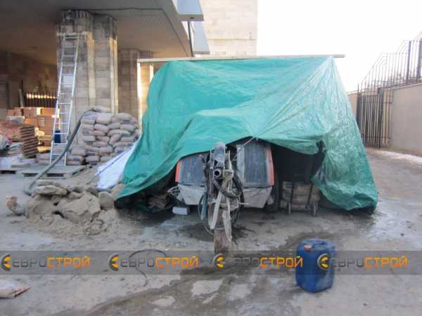 Для того чтобы вода не замерзала, добавляются противоморозные добавки, шланги утепляются. Зимой, чтобы раствор легче доставлялся на высокие этажи можно добавить в воду несколько капель моющего средства Fairy, получив тем самым эффект стартовой смеси, за счет этого внутренняя поверхность шланга приобретает маслянистую оболочку (пленку), по которой транспортировка раствора происходит значительно легче. Песок зимой завозится небольшими партиями, по 10-12 кубических метров, с расчетом его выработки за один день, иначе на следующий день вместо хорошего крупнозернистого, мытого песка можно увидеть одну большую ледяную глыбу, отогреть которую практически невозможно.