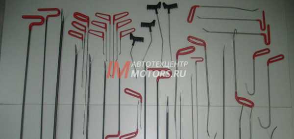 Как же проходит сам процесс устранения вмятин в стенах любого техцентра? Весь ремонт предусматривает эксплуатацию специальных рычагов (крючков) различной конфигурации, благодаря которым осуществляется давление на внутреннюю поверхность металла. Для того чтобы подобрать правильную стратегию ремонта вмятин, мастер должен учитывать все параметры каждой вмятины, а также ее специфические особенности. Здесь берутся во внимание месторасположение на кузове автомобиля, длина, ширина, глубина вмятины, качество лакокрасочного покрытия, а также толщина металла кузова автомобиля.