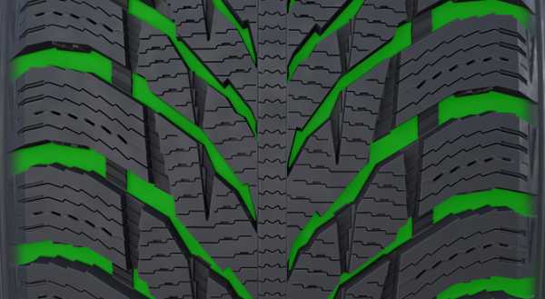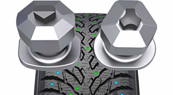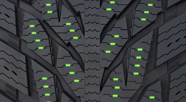 Инженеры изобрели настоящую изюминку, применив сразу 2 типа шипов, у которых разная задача. Первый тип шипов находится по центру беговой дорожки шины, и его функция – осуществлять контакт при прямолинейном движении. Второй тип шипов расположен ближе к бортам шины, и должен обеспечивать поперечный контакт с дорогой.