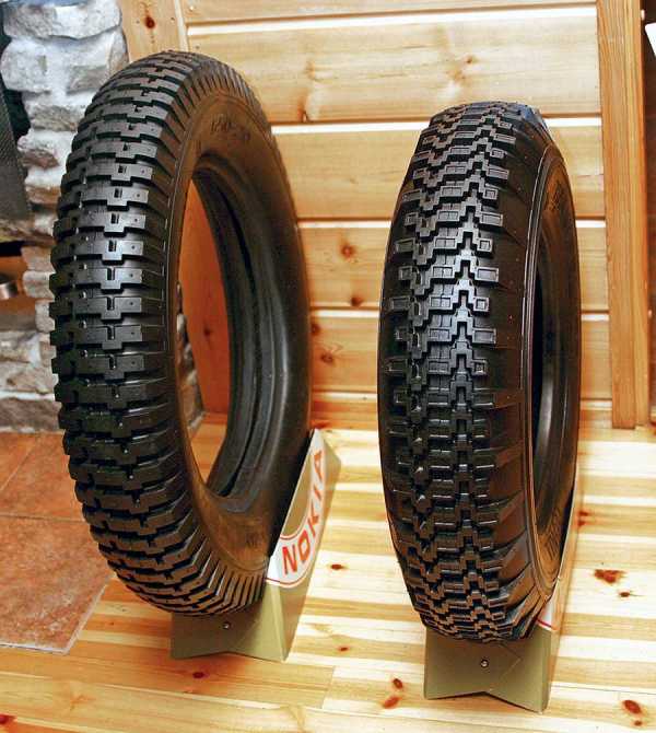 Первые зимние шины: слева модель Kelirengas, справа — Lumi-Hakkapeliitta