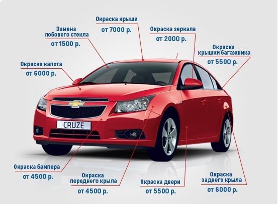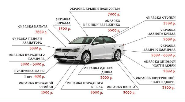 | Окрас детали в один цвет (дверь, бампер, крыло) | 8 000 р |