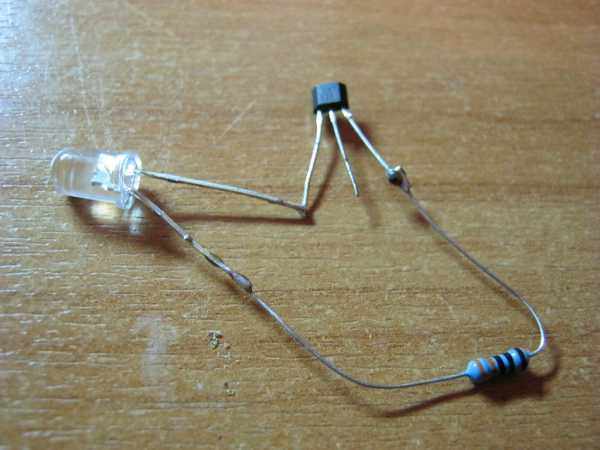 Для этого давайте соберем простейшую схемку: простой светодиод на 3 Вольта, токоограничительный резистор на 1КилоОм и, конечно же, сам датчик Холла.