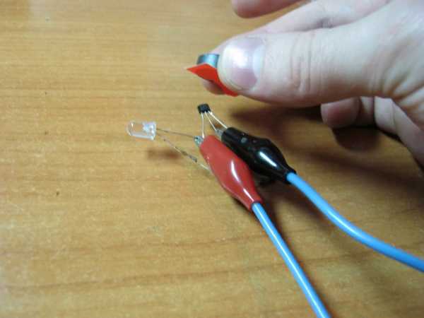 Осциллограмма исправного датчика Холла СБЗЕст еще один вариант проверки, по принципу напоминающий второй способ. Он может быть полезен, если под рукой нет измерительных приборов. Для тестирования понадобиться резистор номиналом 1,0 кОм, светодиод, например, из фонарика зажигалки и несколько проводков. Из всего этого набора собираем прибор в соответствии с рисунком 9.