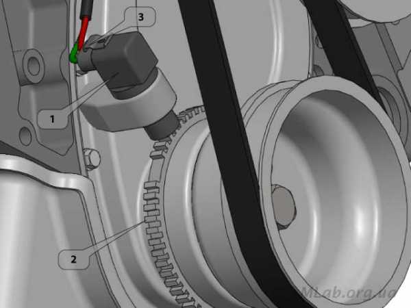 Этот тип датчика наиболее распространен в качестве ДПКВ. Датчик монтируется поблизости от подвижного элемента, называемого маркерным диском. Этот элемент представляет собой стальной диск с зубьями, который жестко зафиксирован на коленчатом валу (может находиться как со стороны ременной передачи, так и непосредственно на маховике КВ).