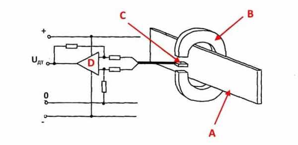 Упрощенная схема датчика тока на основе эффекта ХоллаОбозначения: