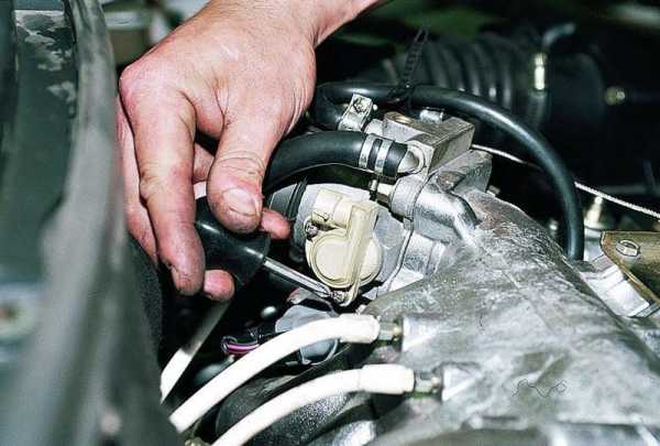 На карбюраторных моторах для этого потребуется снять воздушный фильтр или переходник патрубка воздушного фильтра, демонтировать топливные и вакуумные шланги, отсоединить подогрев, провод ЭПХХ и приводные элементы (тросики или тяги). После чего открутить гайки крепления карбюратора и снять его. Для очистки дроссельной заслонки используйте очиститель карбюратора. Обильно опрыскайте заслонку очистителем карбюратора и через 10 – 20 секунд продуйте ее сжатым воздухом. Такую промывку выполняйте 5 – 8 раз. Если не получится очистить и отремонтировать заслонку без разборки карбюратора, то потребуется сложный ремонт, который желательно доверить специалисту.