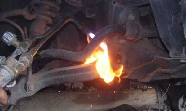 Более простой способ как запрессовать сайлентблок заключается в использовании паяльной лампы или газовой горелки. В таком случае старая деталь попросту выжигается. После того как резина прогорит 10-20 минут, сайлентблок можно вытащить с помощью зубила и простого молотка. Как в первом, так и во втором случае после снятия старой детали необходимо тщательно зачистить отверстие при помощи наждачной бумаги и смазать его мыльным раствором (чем больше, тем лучше).