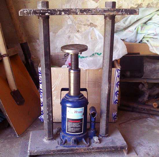 Домкрат. Казалось бы, как домкратом можно выдавить сайлентблок? Все очень просто, необходимо сварить прямоугольную рамку из какого-нибудь швеллера или уголка по высоте чуть выше вашего домкрата и рычага. Принцип следующий — устанавливаем домкрат в рамку, после чего поверх штока устанавливаем проушину рычага и две проставки, о которых говорилось выше. Создаем необходимое давление, и втулка выдавливается из посадочного места. Следует отметить, что в большинстве случаев домкрат мощностью 3-5 тонн просто не в силах справиться с такой работой, поэтому лучше использовать 10-15-тонные домкраты.