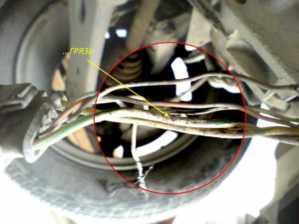 Нижний разъем сервопривода находится прямо у левого колеса. Думаю на него особенно попадает вся дрянь из-под колес (фото сделано снизу вверх из-под колесной арки).