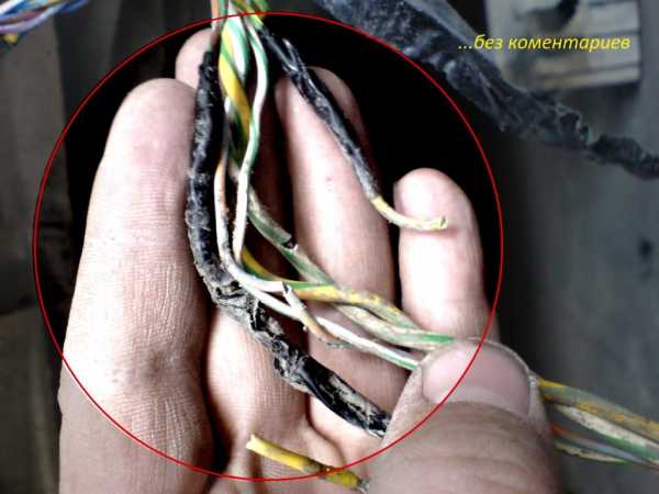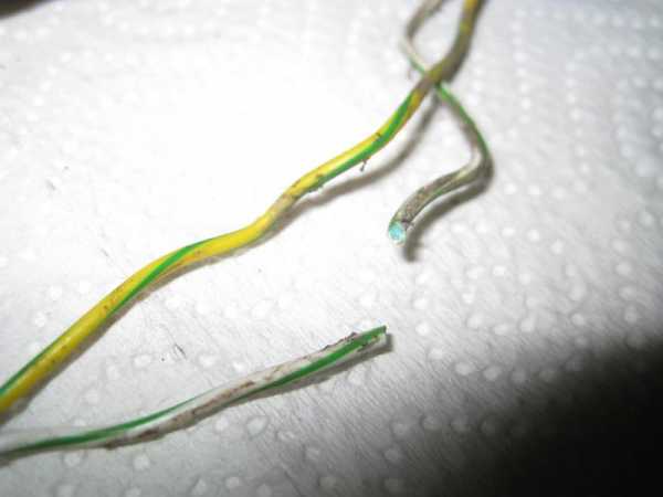 Осмотрел порванный провод. Собственно что и требовалось доказать – окислившаяся медь в месте разлома говорит сама за себя – изоляция провода каким-то образом была повреждена, и он просто отгнил.