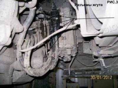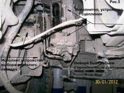 Все манипуляции делал через капот. Может на подъемнике снизу было бы удобнее – потому что все детали находятся в самом низу у КПП. Разъем нижнего сервопривода “Робота” – вообще в 20 см от левого колеса.