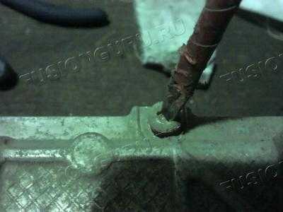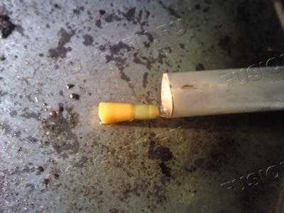 Сверху товарищ через воронку заливал, а я снизу контролировал выход через отверстие, вышеобозначенное на фотах. Примерно вошло половина бутылькА. (как только полилось оч. хорошо – заткнул трубкой уходящей и зафиксировал). Сверху у него полная трубка, быстро соединяем с отходящей от бачка, выдернув шуруп. И смотрите, чтобы в бачке жидкость не убыла ниже критичного. Все соединив, и налив полный бачок, приспособил вот такую замуту: шприц с резинкой от капельницы