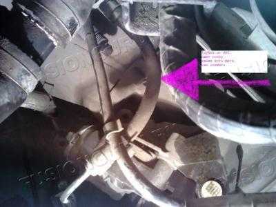 Из-под машины открывается вид на ИУС (исполнительное устройство), снизу надо снять трубку с тормозухой, т.е. подцепить скобу и тянуть на себя в сторону. То, что выльется – не важно, но выльется на вас, поэтому лучше подставить посудину и заткнуть тряпкой отверстие.
