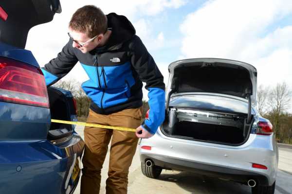 Если сравнивать между собой автомобили по габаритам, то размеры японского представителя несколько превосходят показатели немецкого. Габариты Mazda 6 составляют 4870 мм в длину, 1840 мм в ширину, 1450 мм в высоту, колесная база 2830 мм, дорожный просвет 165 мм. Параметры Пассата: длина — 4767 мм, ширина — 1832 мм, высота — 1456 мм, колесная база — 2791 мм, клиренс — 145 мм. Объем багажника японского седана составляет 438 литров против 586 литров у немецкого.