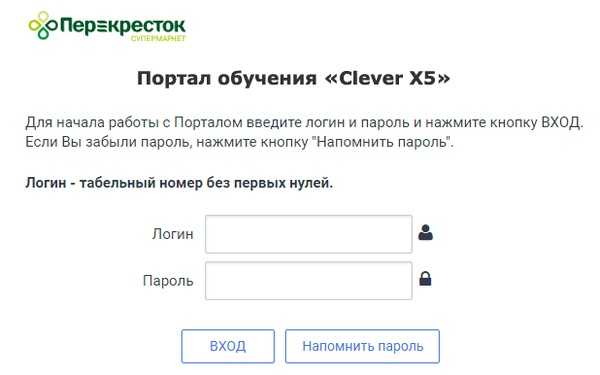 При успешном устройстве на работу руководство Перекрестка обязано сообщить Вам персональные данные входа в учебный портал: логин (табельный номер без первых нулей) и пароль. Далее нужно выполнить следующий алгоритм действий: