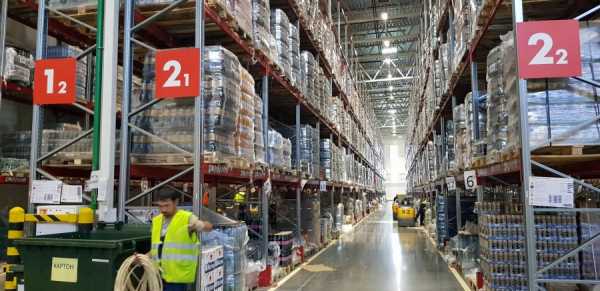 Все привозимые на распределительный центр продукты развозят по четырем больших отделения.