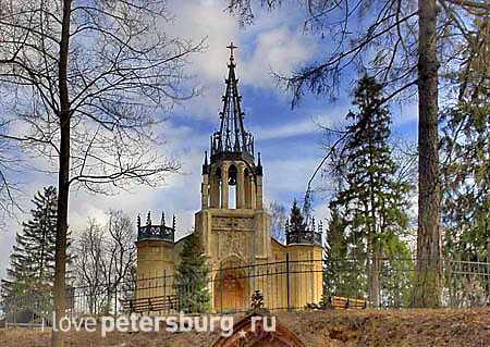 Расположена церковь святого Александра Невского на территории парка «Александрия», в восточном направлении от дворца, на зелёном открытом пригорке. Она интересна тем, что являясь изначально православной, была построена в абсолютно нехарактерном для православной веры готическом стиле, отчего и получила второе обиходное название – «Капелла» («Шапель»). Сооружение церкви в данном стиле отражает русско-немецкие культурные и династические связи начала XIX века. Проект придворного храма в загородной резиденции заказали в начале 1829 года прославленному немецкому зодчему К. Шинкелю. Осуществлять строительство доверили архитектору А. Менеласу, и он его начал в 1831 году. Когда он умер, строительство продолжил И. Шарлемань. Они оба представляли романтическое направление в русской архитектуре. В России оно не было слишком популярным, выражаясь, по большей части, в строительстве интерьеров, маленьких павильонов и, очень редко, небольших церквушек и часовен. Завершились основные работы в 1833 году. Читать дальше