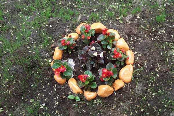 Такая вот прелестная кроха-клумбочка. Её соседки выложены камешками других цветов.