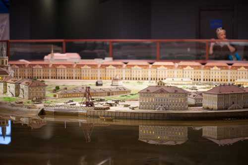 Исторический театр-макет «Петровская Акватория» показывает Петербург и его пригороды 18 века, уменьшенные в 87 раз. Посетители могут следить за движением 130 различных судов, изготовленных по историческим гравюрам, наблюдать за кулачными боями, работой лесорубов, танцами знати на императорском приеме. Крестьяне в полях косят траву, куры клюют зерно, а по дорогам ездят миниатюрные кареты. 25 тысяч персонажей в оригинальных исторических костюмах – от рыбаков и прачек до Петра I и Екатерины II разместились на макете площадью более 500 м2.