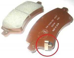 Такой индикатор износа заставляет тормозные колодки свистеть, пищать или скрипеть, так как специальные пластины издают резкий и достаточно громкий звук при контакте с тормозным диском. Указанное напыление есть не на всех колодках, однако многие производители активно используют такой способ предупреждения водителя.