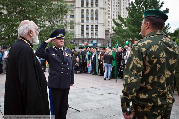 Торжественный марш на День ПограничникаТе, кто уже завершил службу, в этот день тоже надевают зеленые фуражки и полосатые бело-зеленые тельняшки и идут в городские парки, площади и места проведения поздравительных мероприятий.