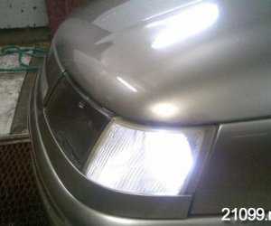 Рассмотрим еще один популярный способ тюнинга автомобиля Ваз 2110 — установка передних габаритов на указатели поворотов. Причем можно не только переставить габаритные ламы из фар в поворотники, но и сдублировать их. Выполнить перестановку лампочек не сложно. Для начала в поворотнике делаем дырку, куда мы будем вставлять патрон под обычную лампу накаливания или под светодиоды. При желтом свете габаритов поворотники будут просто сливаться с основными габаритами, если же цвет габаритов белый, то поворотники будут выделяться на фоне основных габаритов.