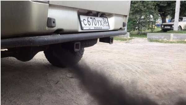 Черный дым из выхлопной трубы говорит о переобогащенной смеси – потеря мощности из-за кислородного голодания двигателя или перелива топлива в форсунки или карбюратор