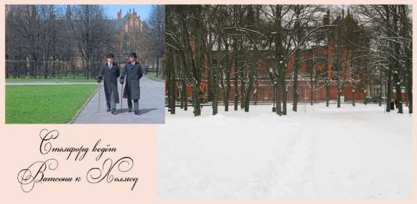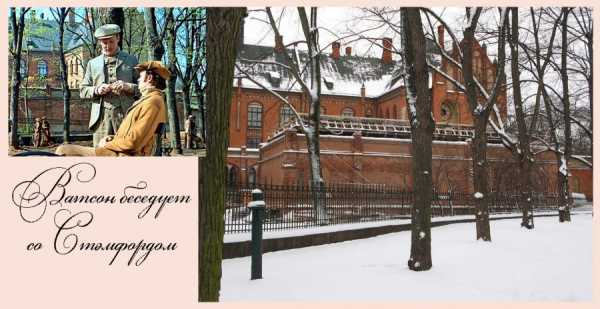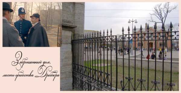 Где снимали фильм о Шерлоке Холмсе в тех эпизодах, когда он пытался проникнуть в усадьбу Милвертона? Забор напротив этого здания, возле которого прогуливался Ватсон, располагался в Ленинграде по Английскому проезду (Маклина), д. 8-10. Там, где снимали фильм о Шерлоке Холмсе, буквально в двух шагах от этого места находится еще одно выбранное режиссером. Здесь также есть забор (в фильме он являлся ограждением усадьбы Милвертона). Съемки велись в Ленинграде по Английскому пр., возле дома 2б и на набережной р. Мойки, недалеко от д. 122.