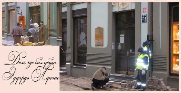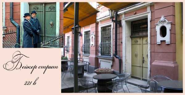 Как видите, никакой мемориальной доски на доме нет, а могла бы быть. Хозяева расположенного рядом кафе тоже никак не эксплуатируют имя Холмса, хотя редкому заведению достаётся такой подарок. Оно и понятно – это ведь не латышский фильм…
