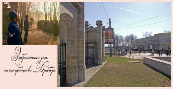 Это место находится в двух шагах от предыдущего, хотя и не в зоне прямой видимости, как это было в Фильме. Этот второй забор примыкает к парку дворца великого князя Алексея Александровича, командующего русского флота, брата Александра III.