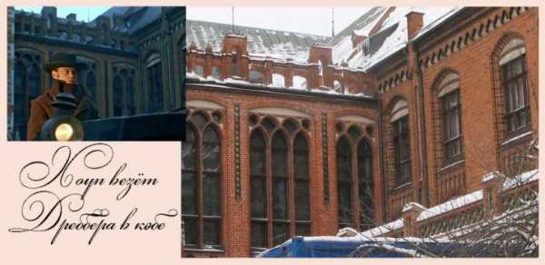 Дом Шерлока Холмса, однако, расположен чуть в стороне от проезжей части, в маленьком тесном дворике, где в летнее время стоят столики кафе. Несведущий наблюдатель никак не заподозрит, что это здание – часть монастырского комплекса, а между тем прямо за домом находится двор Домского монастыря. В 1898 году восточное крыло монастыря было слегка расширено и, благодаря архитектору Вильгельму Нейману, у него появился новый фасад
