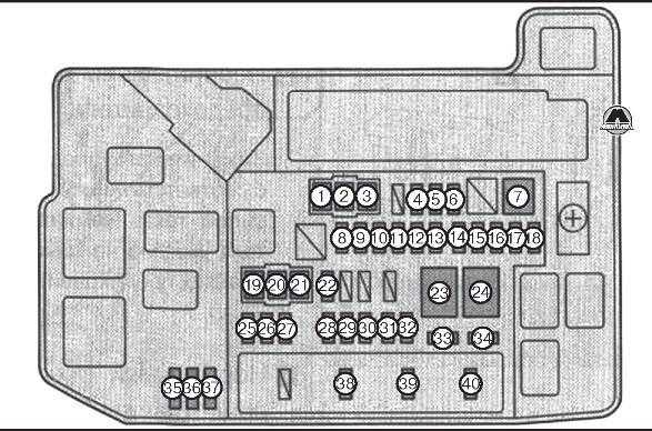 ΡΠ°Π½ΠΈΡΠ΅Π»ΠΈ: «ACC-B», «ESP», «HTR», «RDI», «PS HTR», «PWR OUTLET FR», «ECU-B», «OBD», «STOP», «DOOR», «FR DOOR», «DEF», «AM1» |